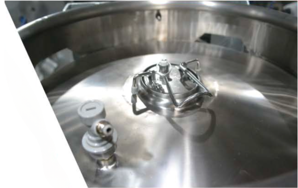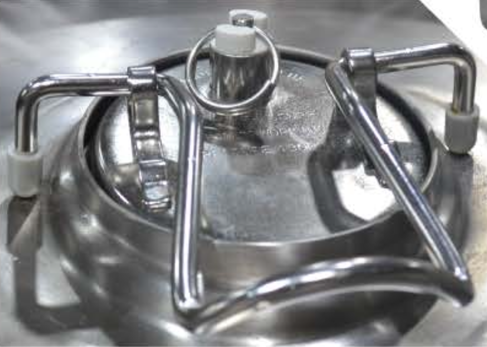 Tapa superior barril tipo Cornelius con goma sanitaria y palanca acero inoxidable.